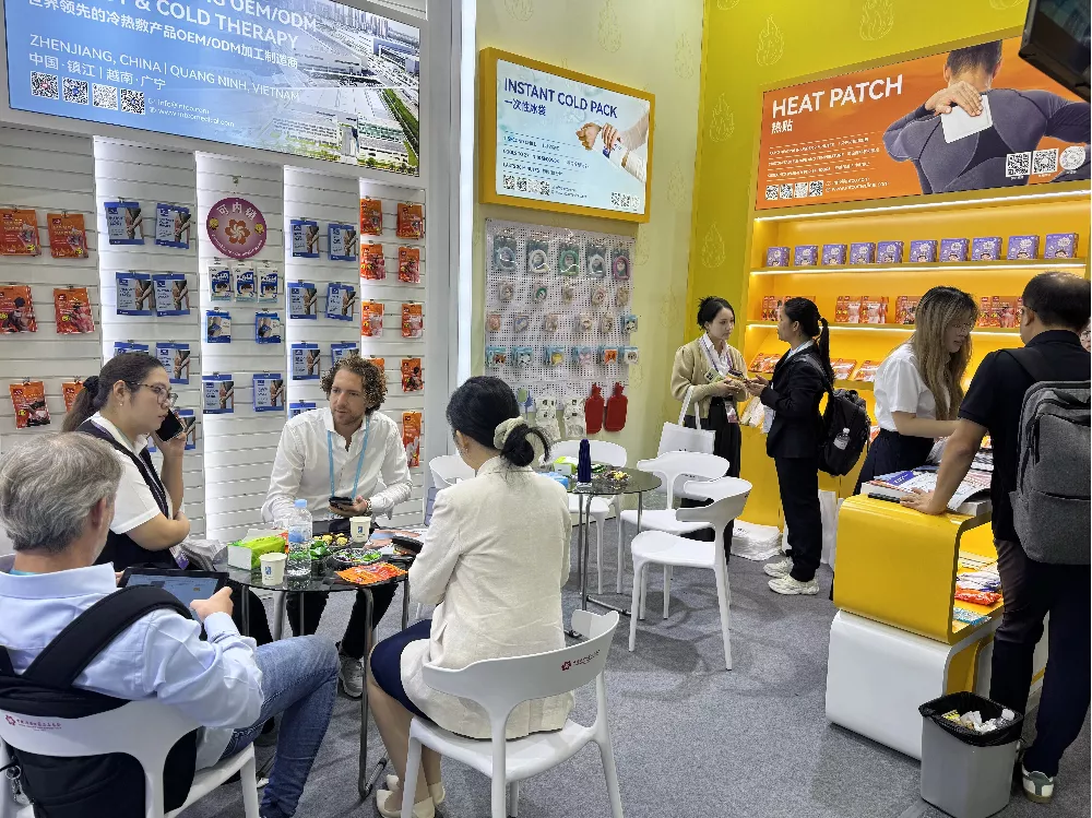At the exhibition site, INTCO's hot and cold therapy products drew significant attention. From instant cold packs for sports recovery to heat patches and cooling patches for daily comfort, the company's products stood out for their safety, comfort, and eco-friendly design. Meanwhile, INTCO's disposable gloves, protective masks, and other medical consumables continued to win praise for their high quality and reliable supply capacity, making them a focal point for international buyers.